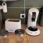 Appartement Renove Tout Confort - Au Pied Des Pyrenees内の台所で、お好みの食事を快適に調理できます。 宿泊施設から徒歩でわずか5分ほどのLoures-Barbazan Gare SNCFバス停からバスに乗って、Loures-Barousseの他の地域を探索することもできます。